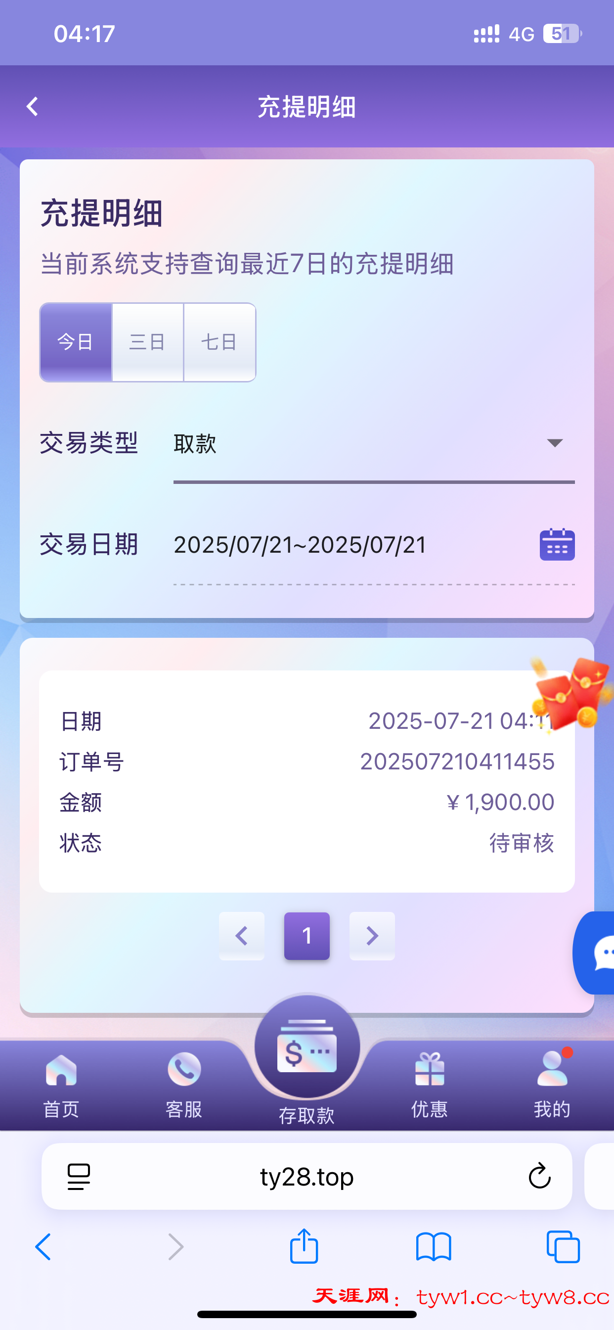 申请的存送活动给我送了三百 六千流水 打完了剩一千九 能不能提啊
