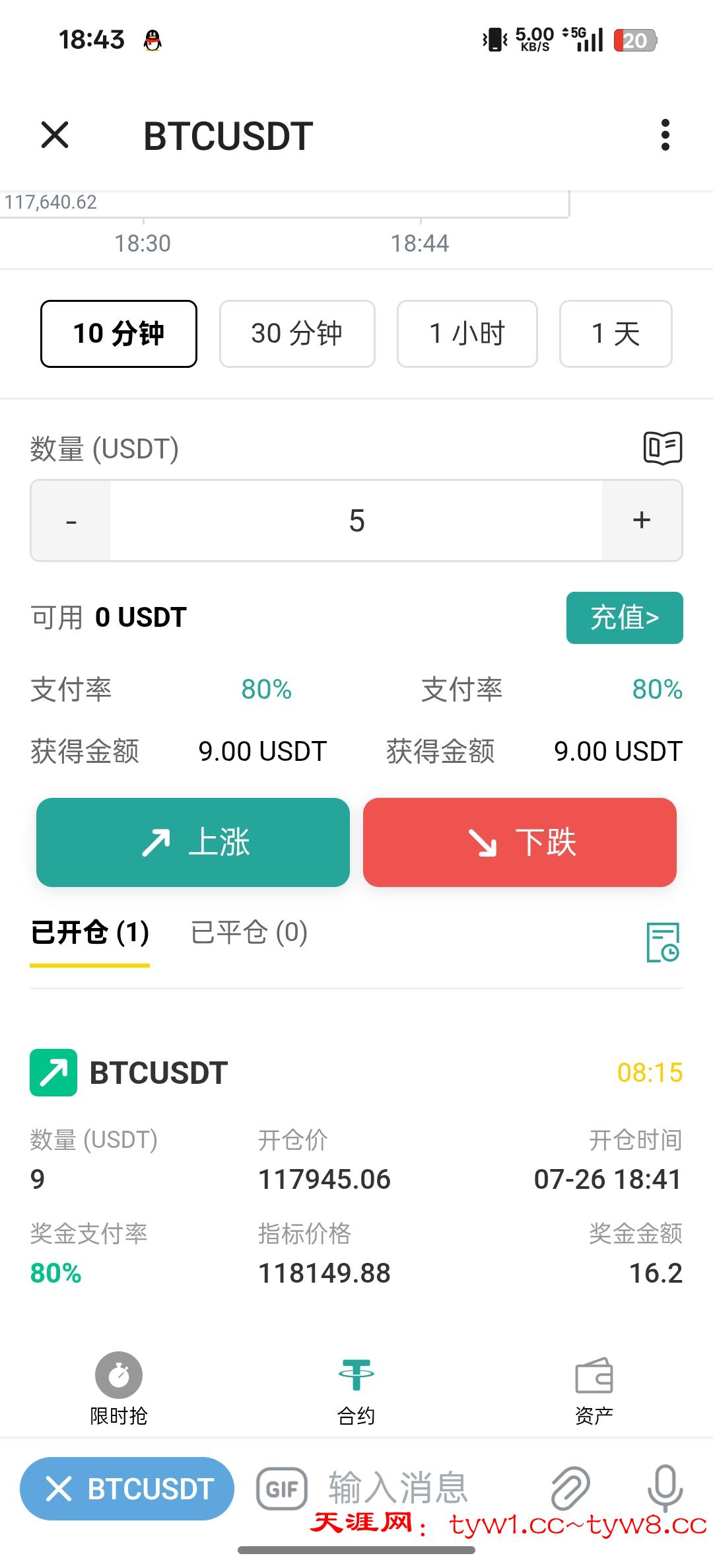 注册秒送5u,玩合约猜涨跌20u可提,