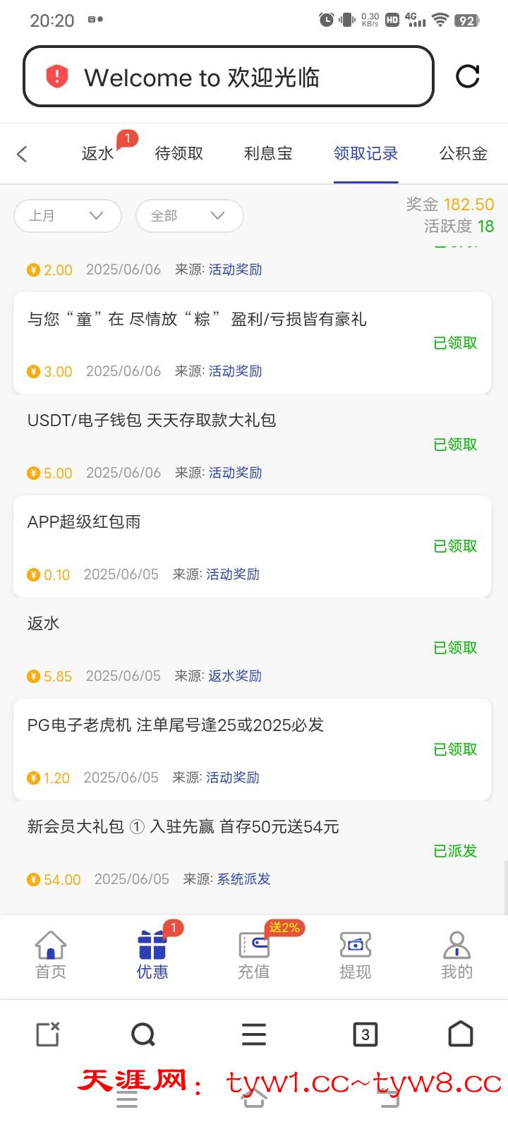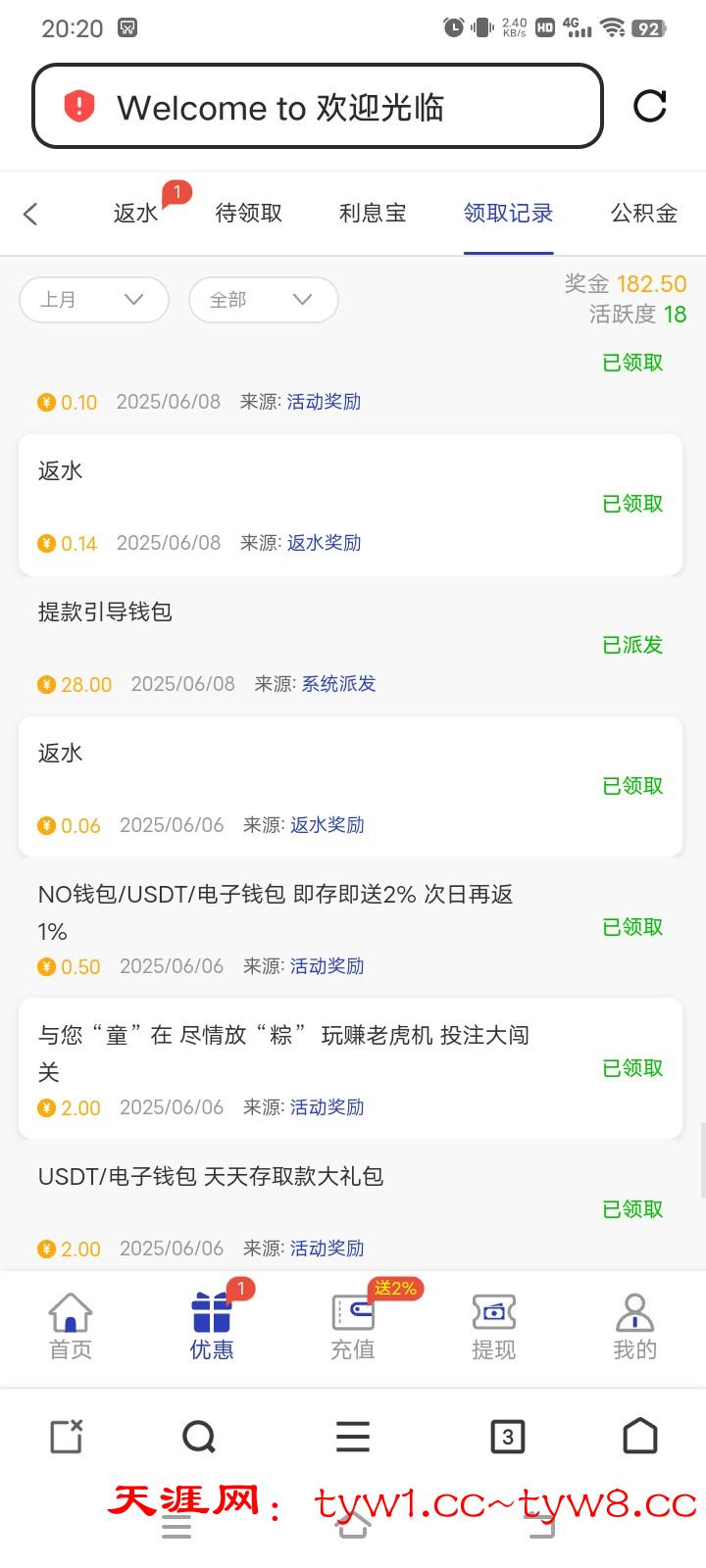 有水 出170冲了50 前提是要u或者钱包充值我用支付宝充了没领到