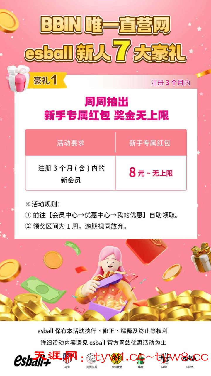 【注册四周内】每周享有新手流水任务,额外赠金!