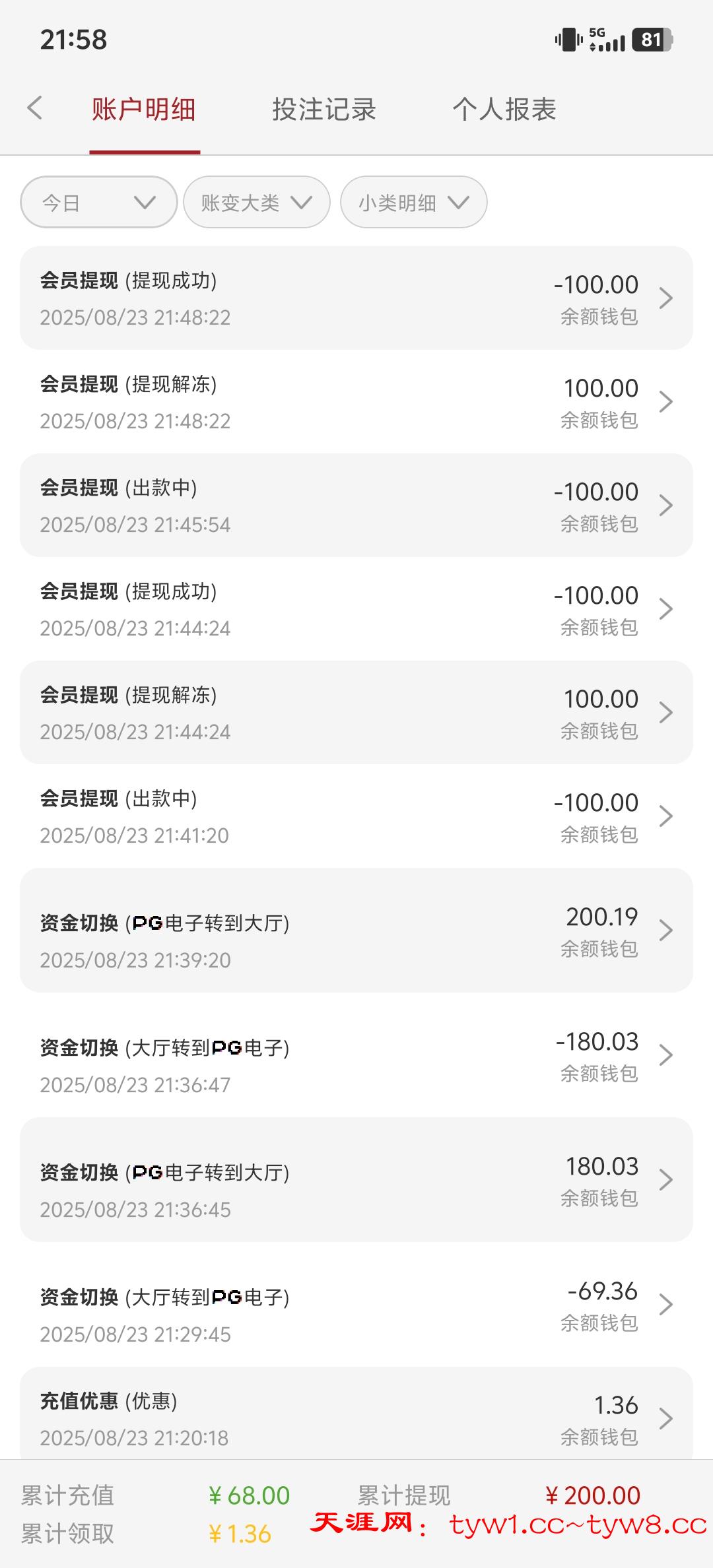 黑台 第一天充值68 没打出来 第二天充值100 提522 罚20倍 是扣除盈利 用100打20倍 全程啥都没玩就玩了麻将1 一直在麻将1 注单异常罚20倍