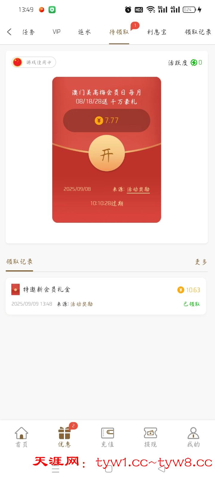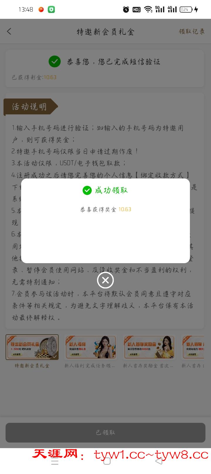刚打来电话注册优惠领取电话彩金,有号充值过的去看看还有一个7.77