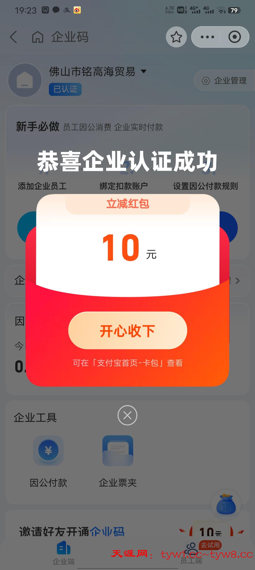 支付宝白嫖十块秒到,有营业执照的老哥去撸