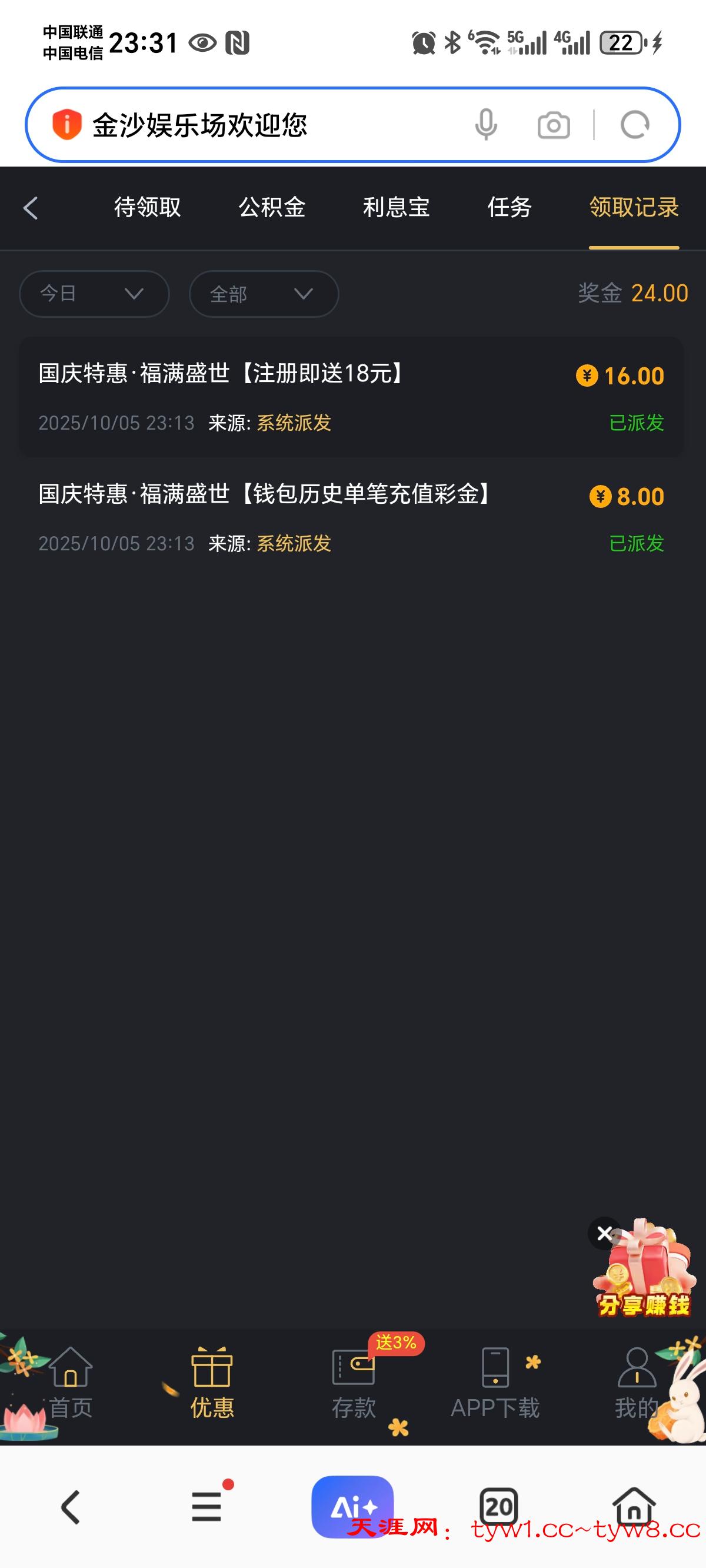 一个是国庆注册彩金,