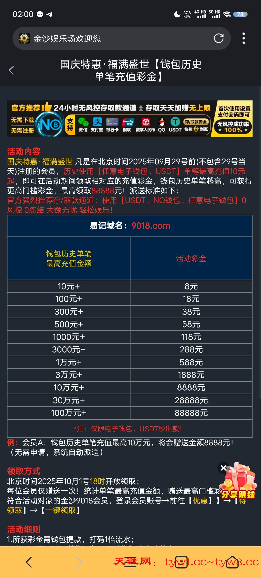 一个是历史单笔存款彩金。充过的至少能领8块