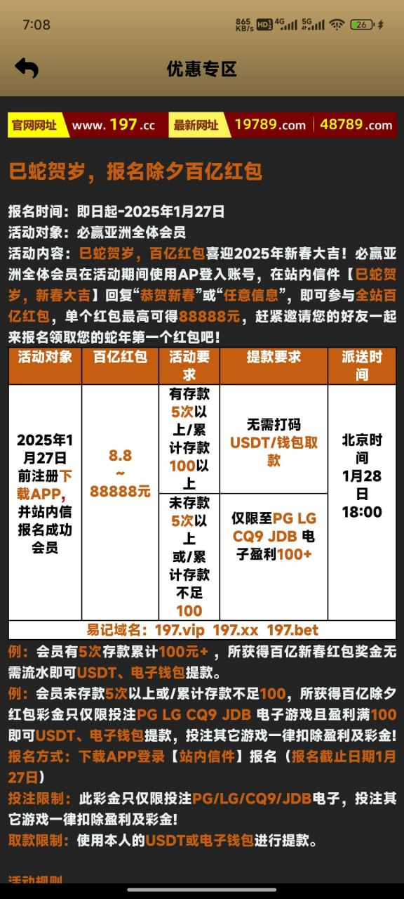 下载APP发站内信28号派发,老用户有号登录站内信报名瓜分彩金活动,然后坐等瓜分彩金即可,最低8彩金,限制自行查看。