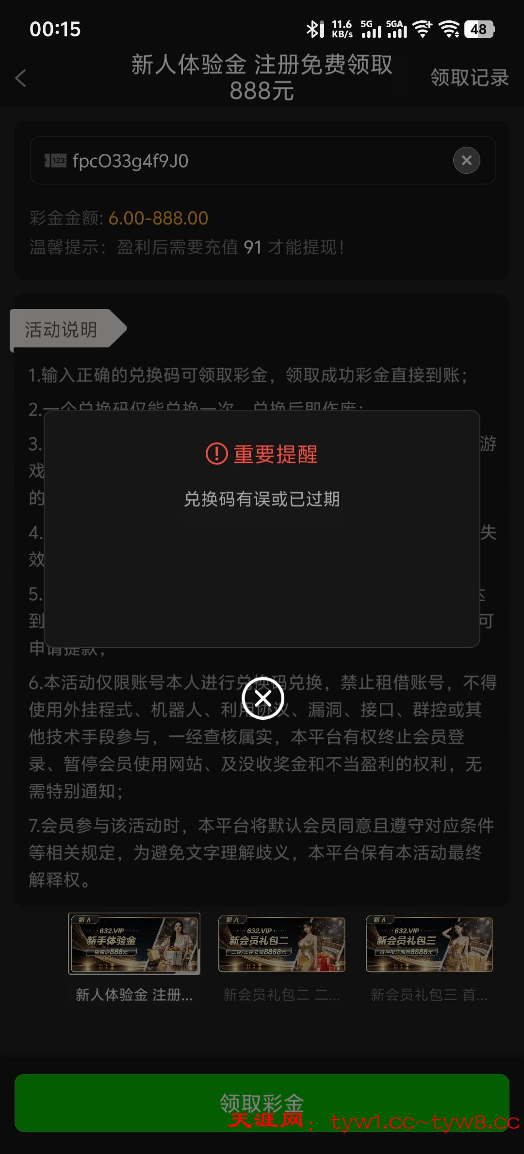 领了此代码不能再领新人6-8的都领封号