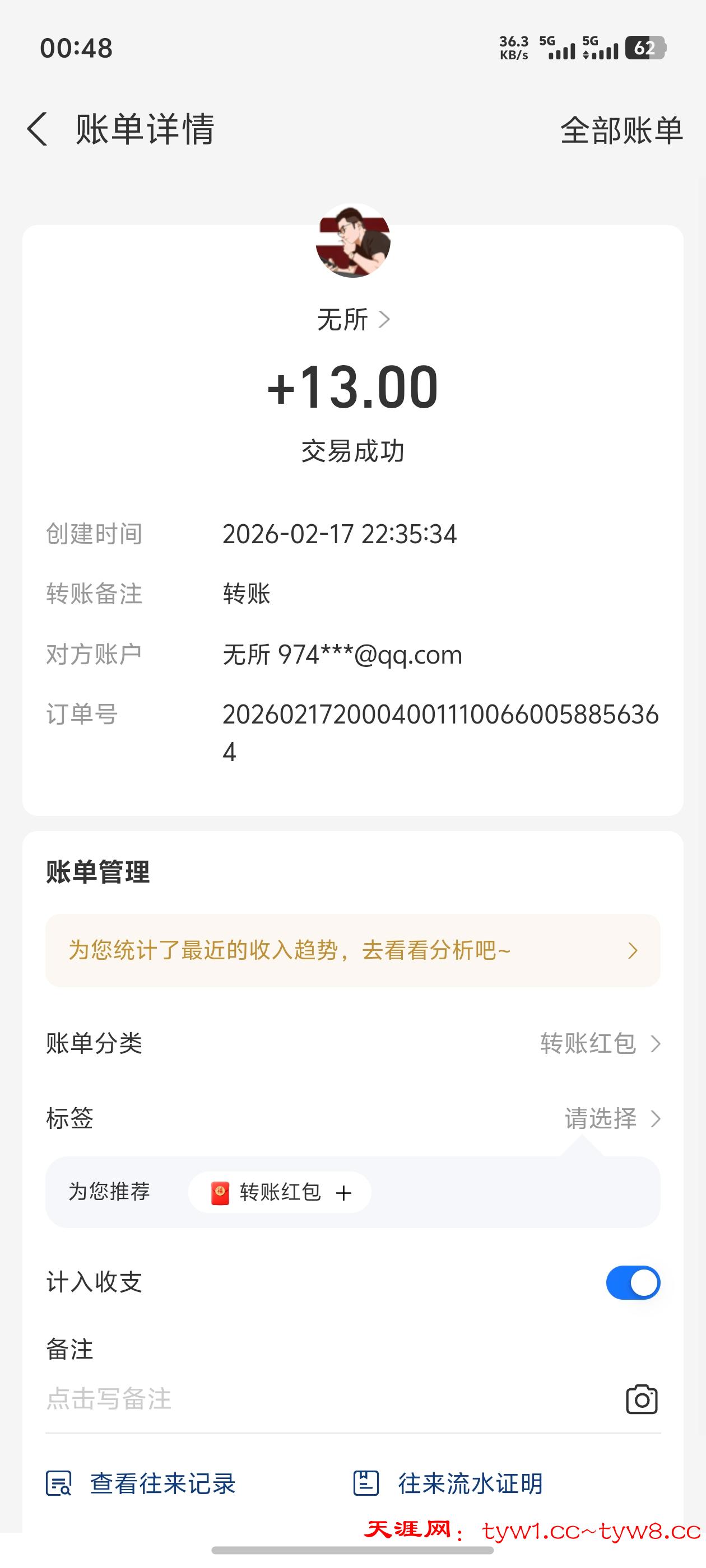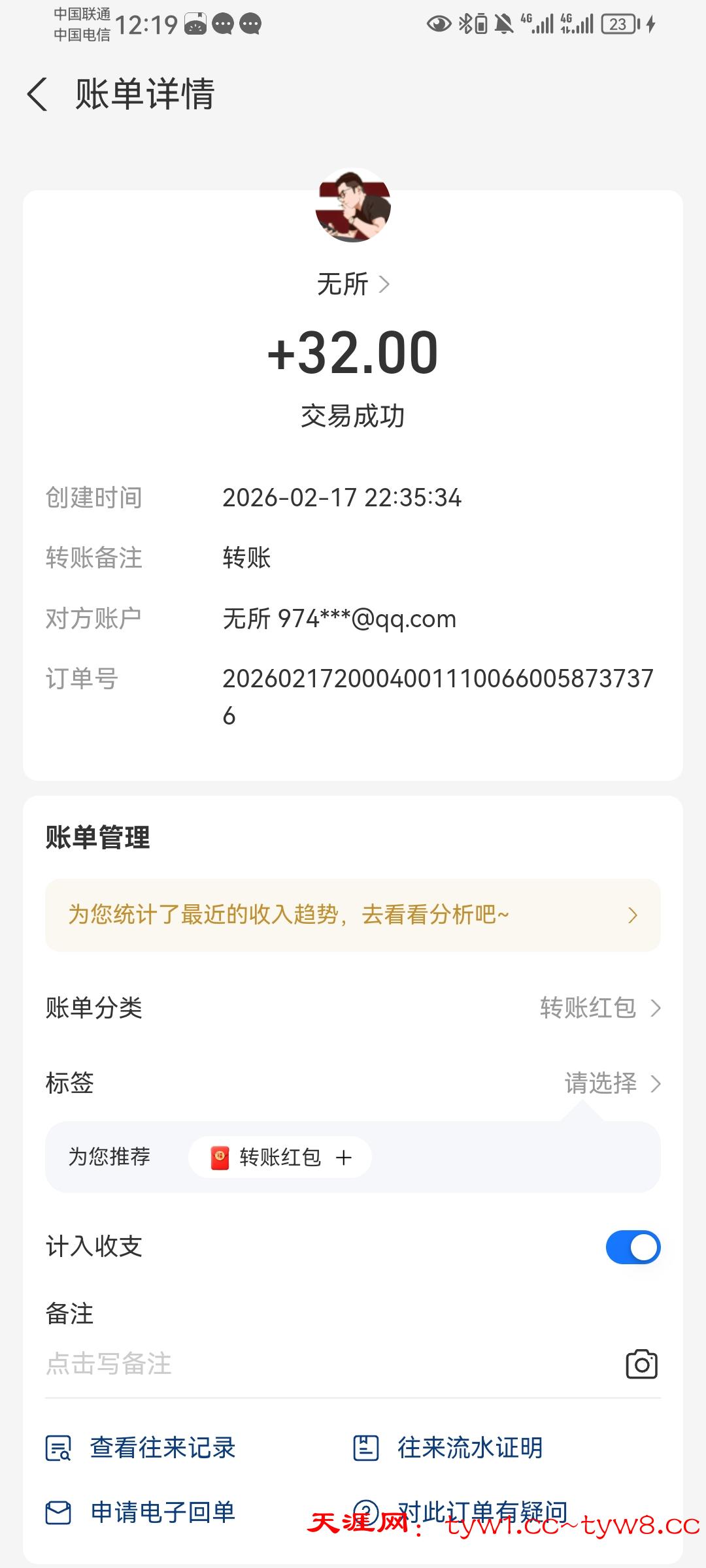 收到了感谢天涯社区