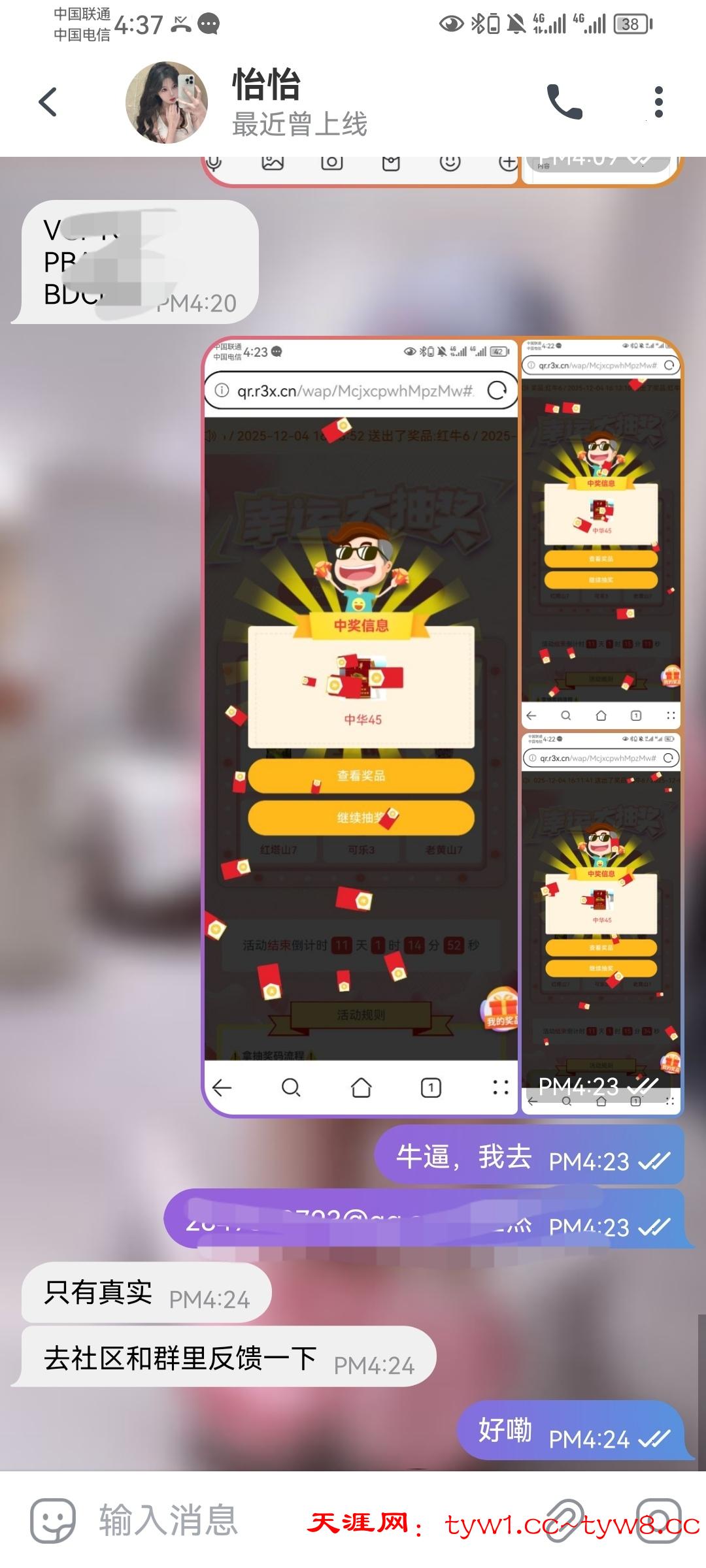 转盘抽了好多天了,之前都是牛子什么的,今天突然来个3华子,动动手指吃135,不说其他的了,天涯牛逼,支持就完了