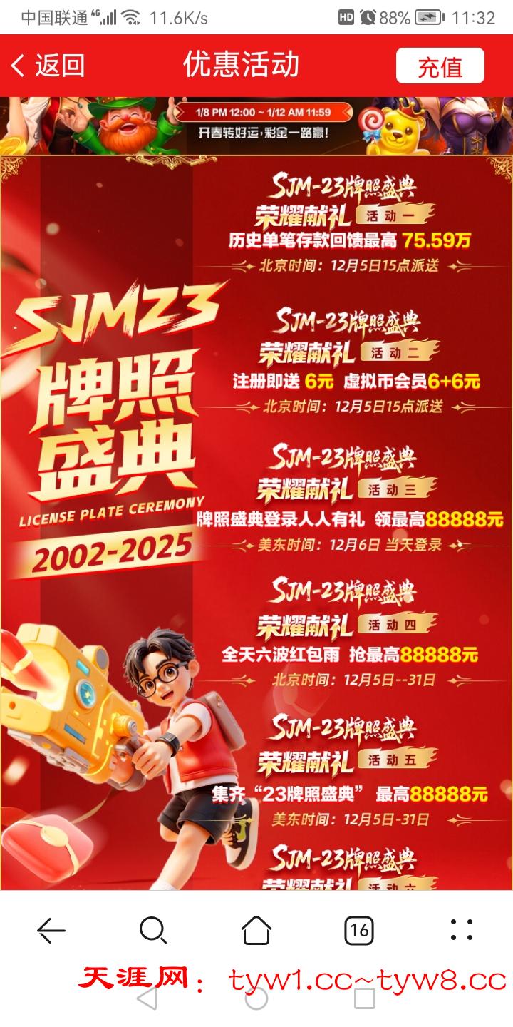 跟377一样的活动 充值过100 有6 6+6要存款5次 还有存款回馈 红包雨 网址7559.com 具体自己看活动