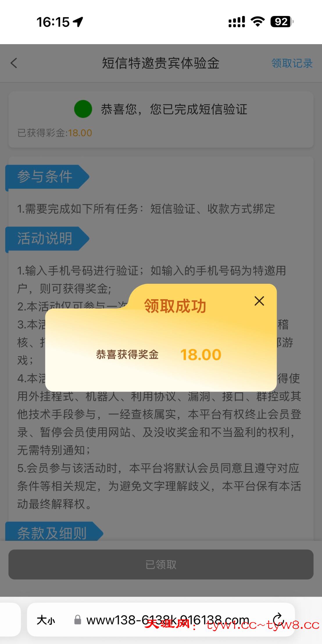 接到电话然后去短信验证18彩金,黑不黑不知道我没打出来,可以去碰瓷一下