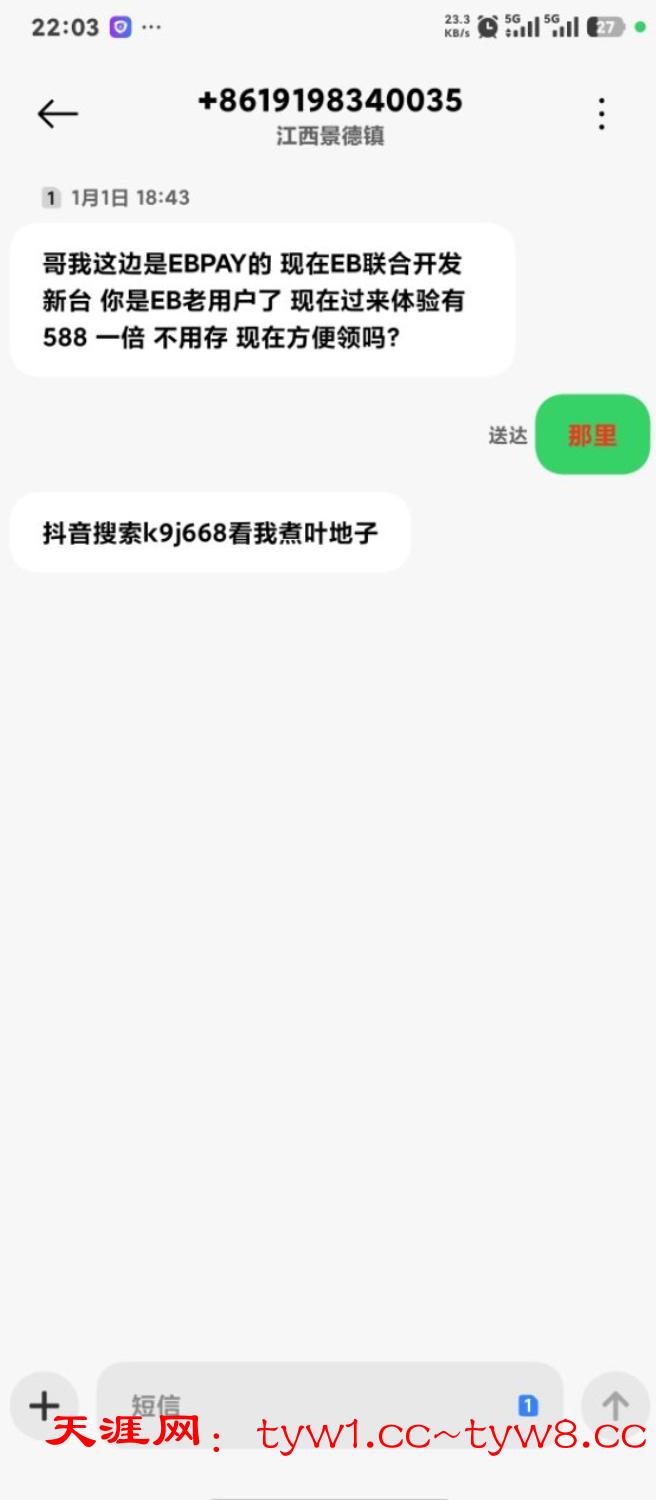 看图联系抖音那个网址客服。   说收到短信送彩金。他会让你下载 MC聊天软件添加客服以后会给你平台网址注册。绑定银行卡姓名发他账号就送三倍流水没有游戏限制建议提eb钱包