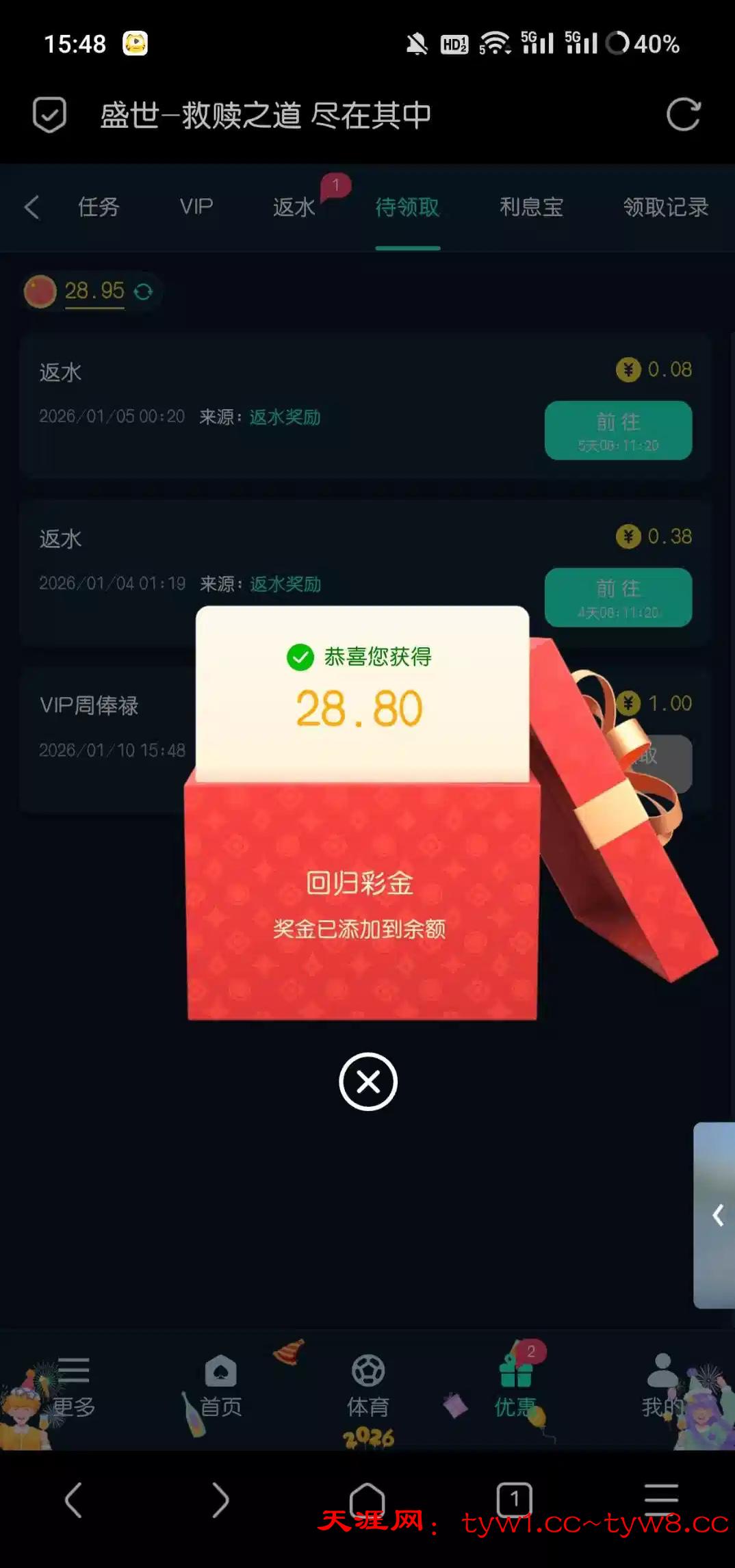 几天没登录有回归彩金玩过的都去看看