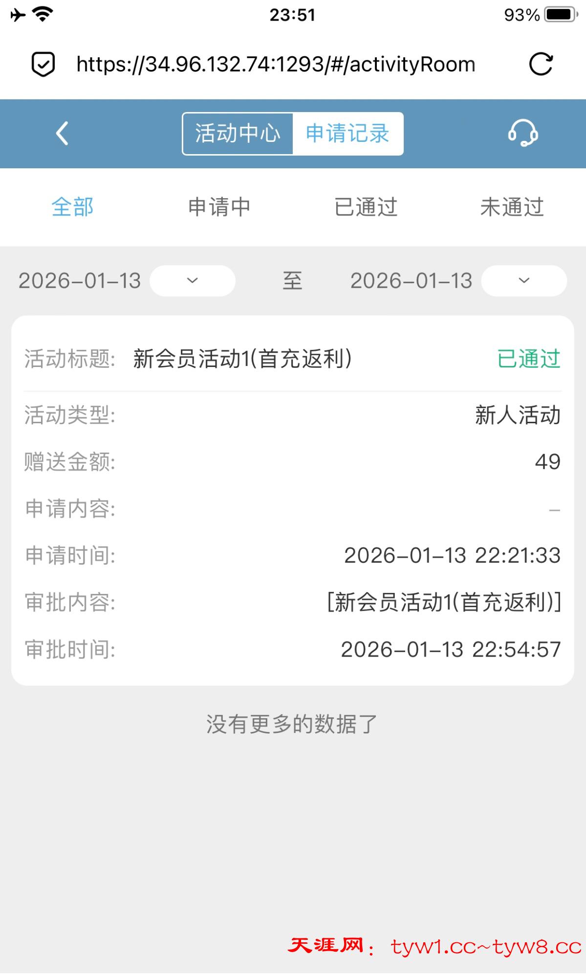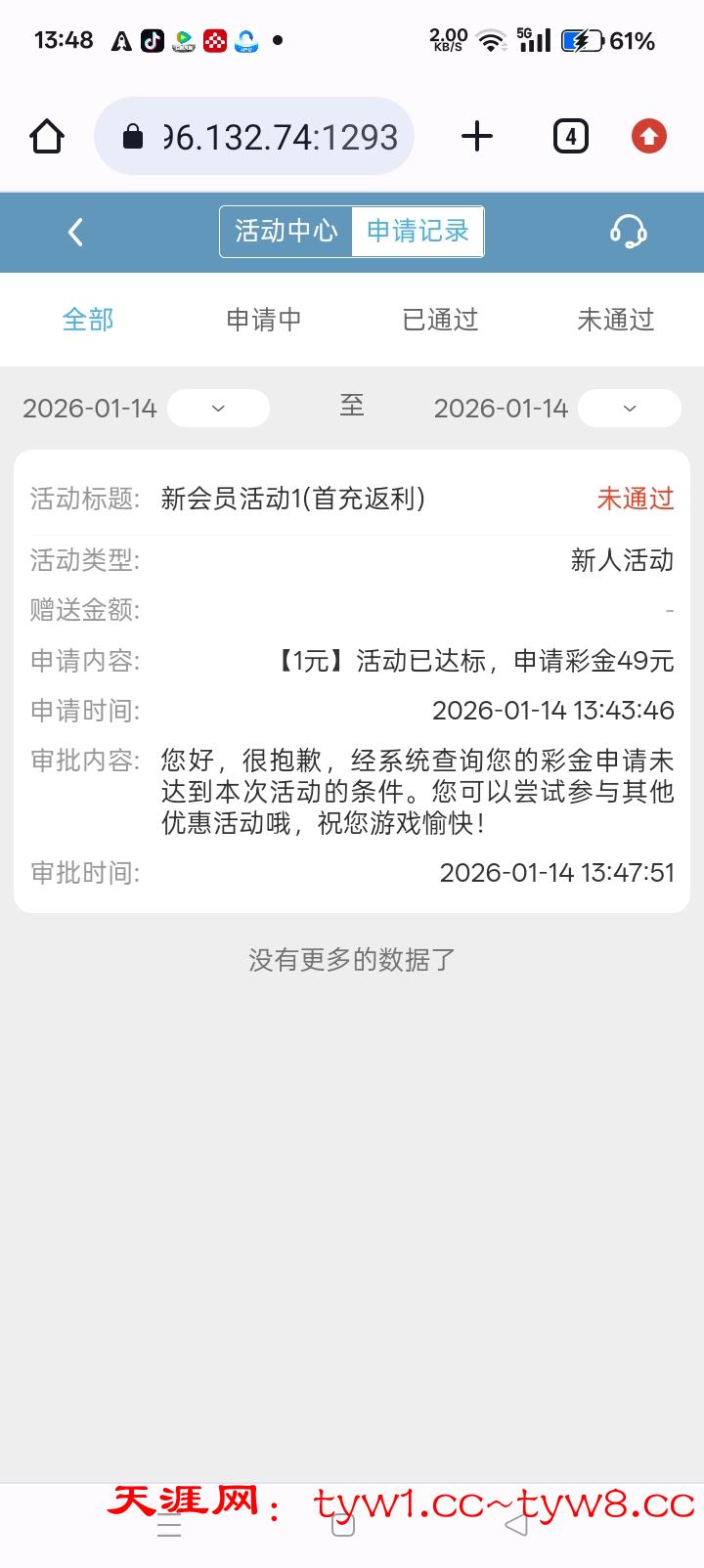 没有通过,注册送的没有,首冲彩金也没有