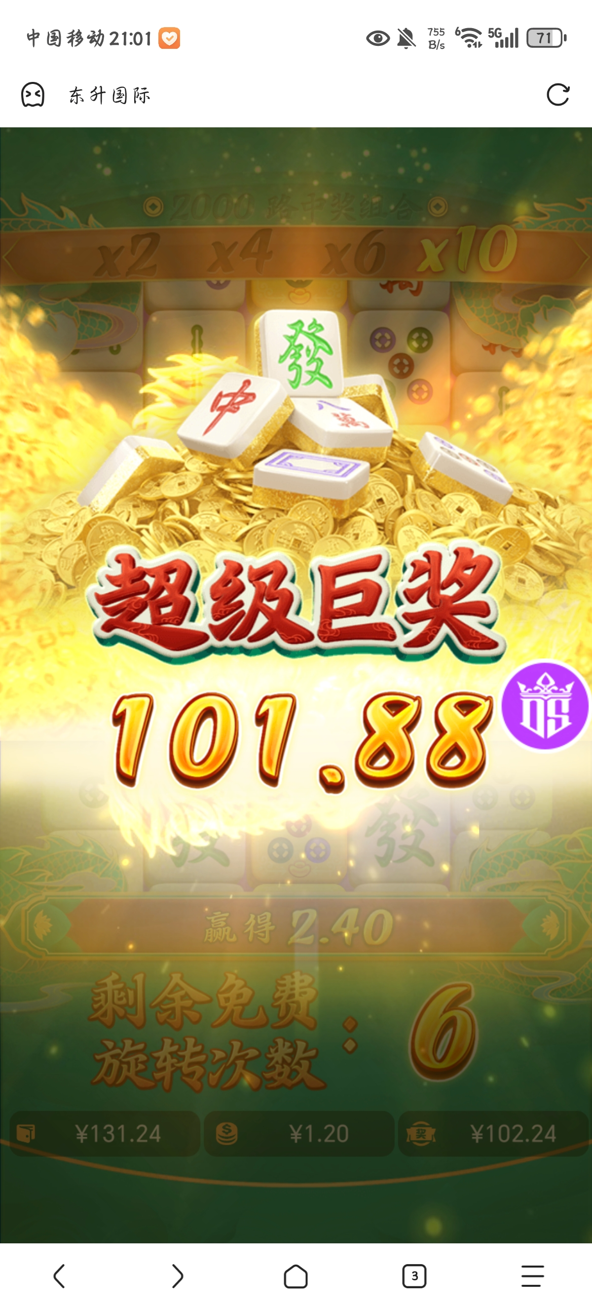6块一拉爆了143倍,有没有爆分加奖呀?