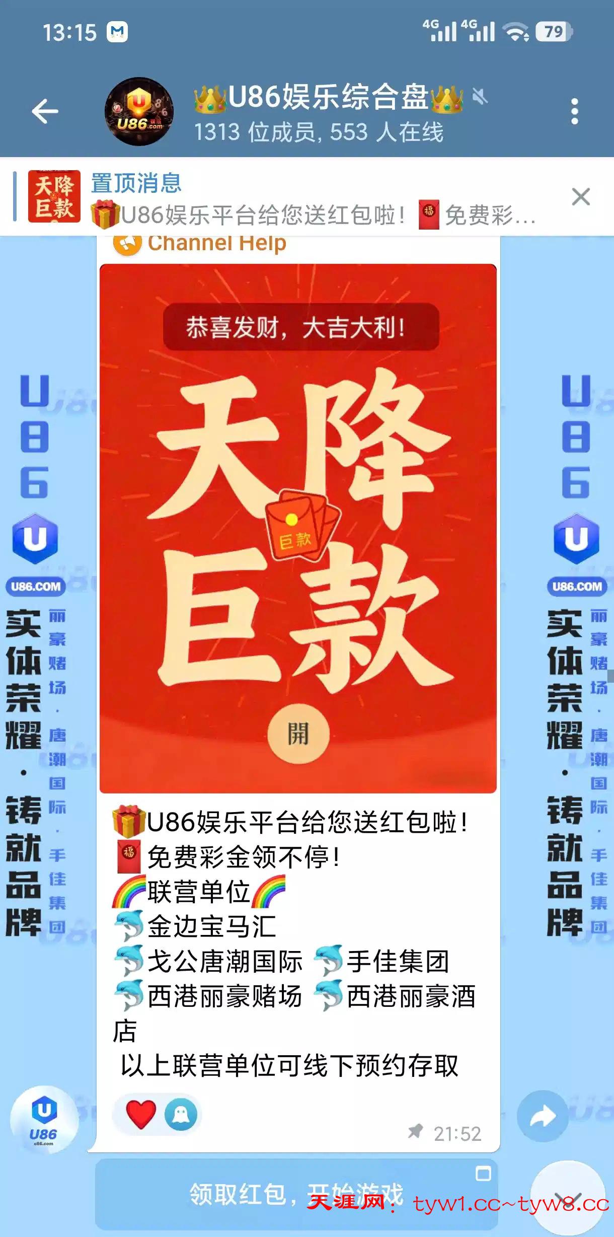 进群领取链接https://t.me/U86game