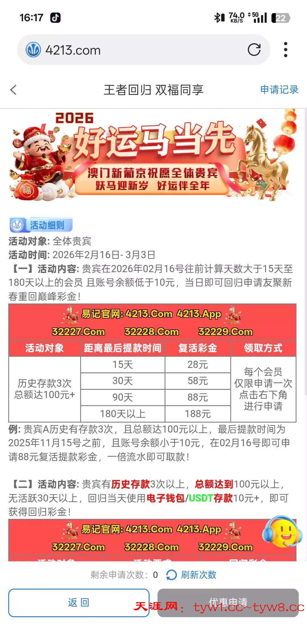 玩过的符合活动的自己去申请看看 4213.com 被黑别骂我 纯分享
