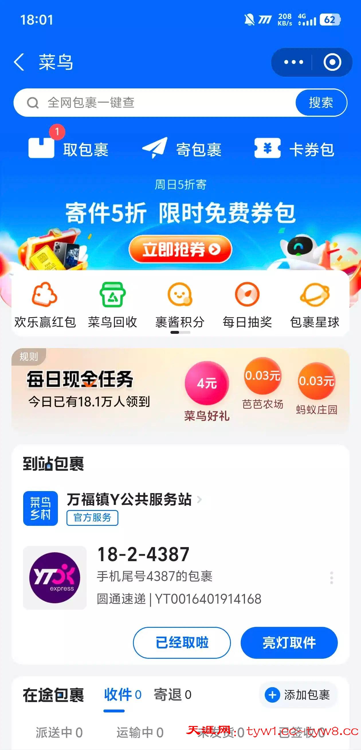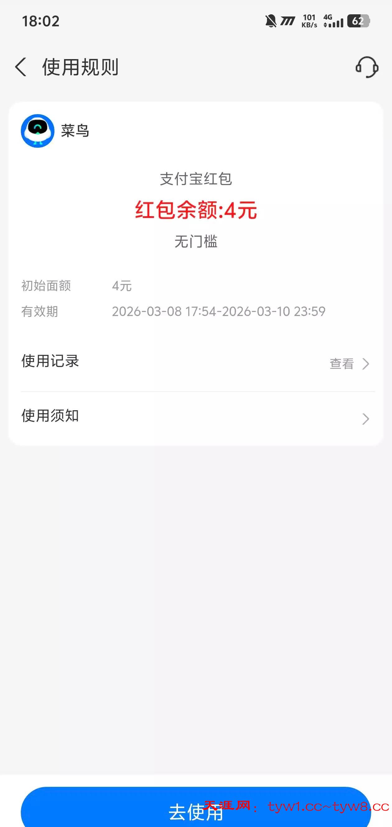支付宝搜索菜鸟,点那个4块钱,下载菜鸟登录一下,必得4块钱支付宝红包,多号多撸,三个支付宝就是12,点那个菜鸟好礼4元点那个任务现金