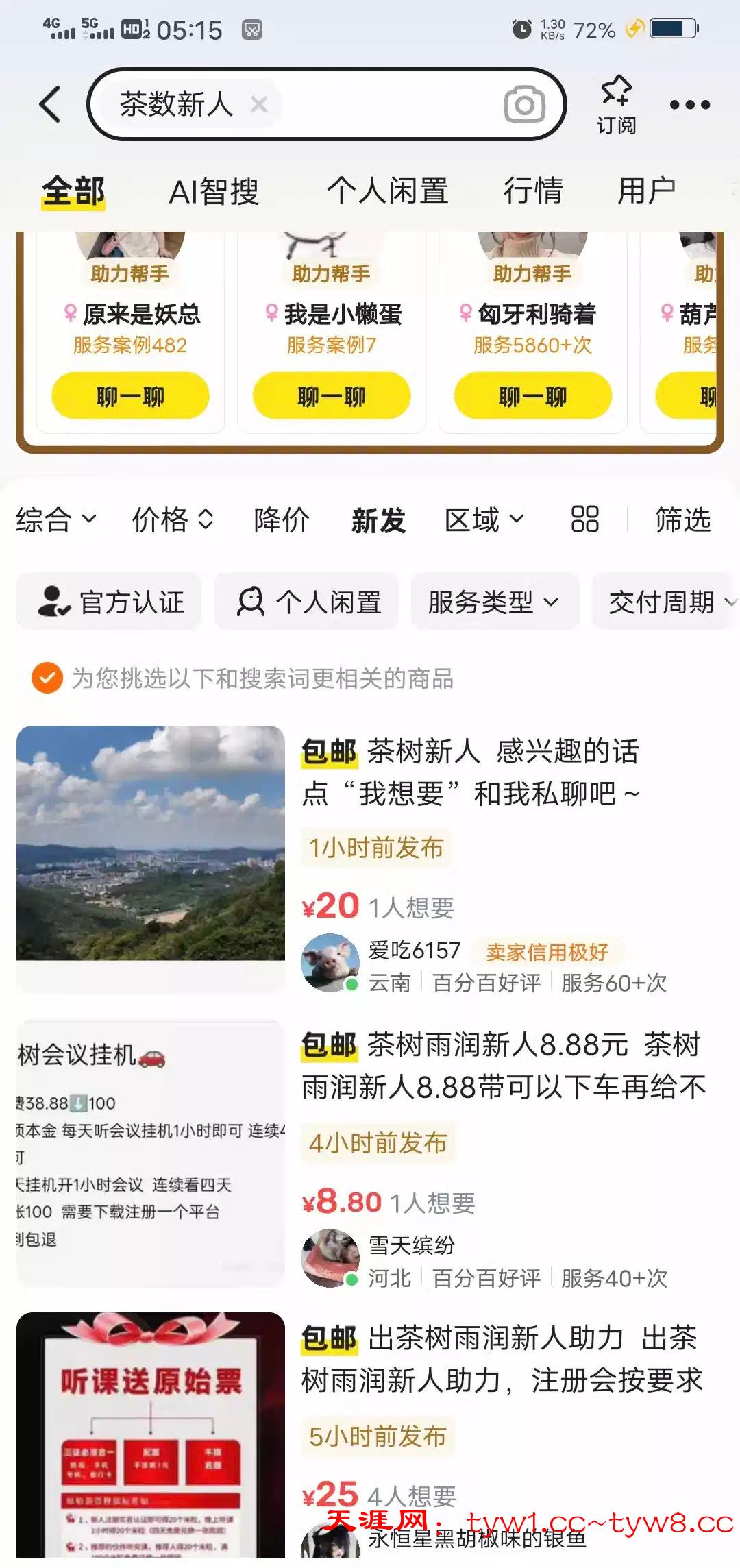 首先咸鱼去搜索茶数新人,或者茶树新人。现在人头20,一般都在16往上。找信用极好的人卖。自己需要入金一块,每天下午7点50腾讯会议挂机一个小时。挂4天给一个茶票。可以卖85加人头钱白嫖100,过年前的项目,那时候不温不火,现在火了,外面都是收费上车的。白嫖到了帖子打赏点金币。一人一个就行。自己别投钱,白嫖就行。有的人可以给你代挂机,但是人头费少,感觉没必要,自己挂吧。人头别压价,白嫖到了打赏一金币。谢谢!!