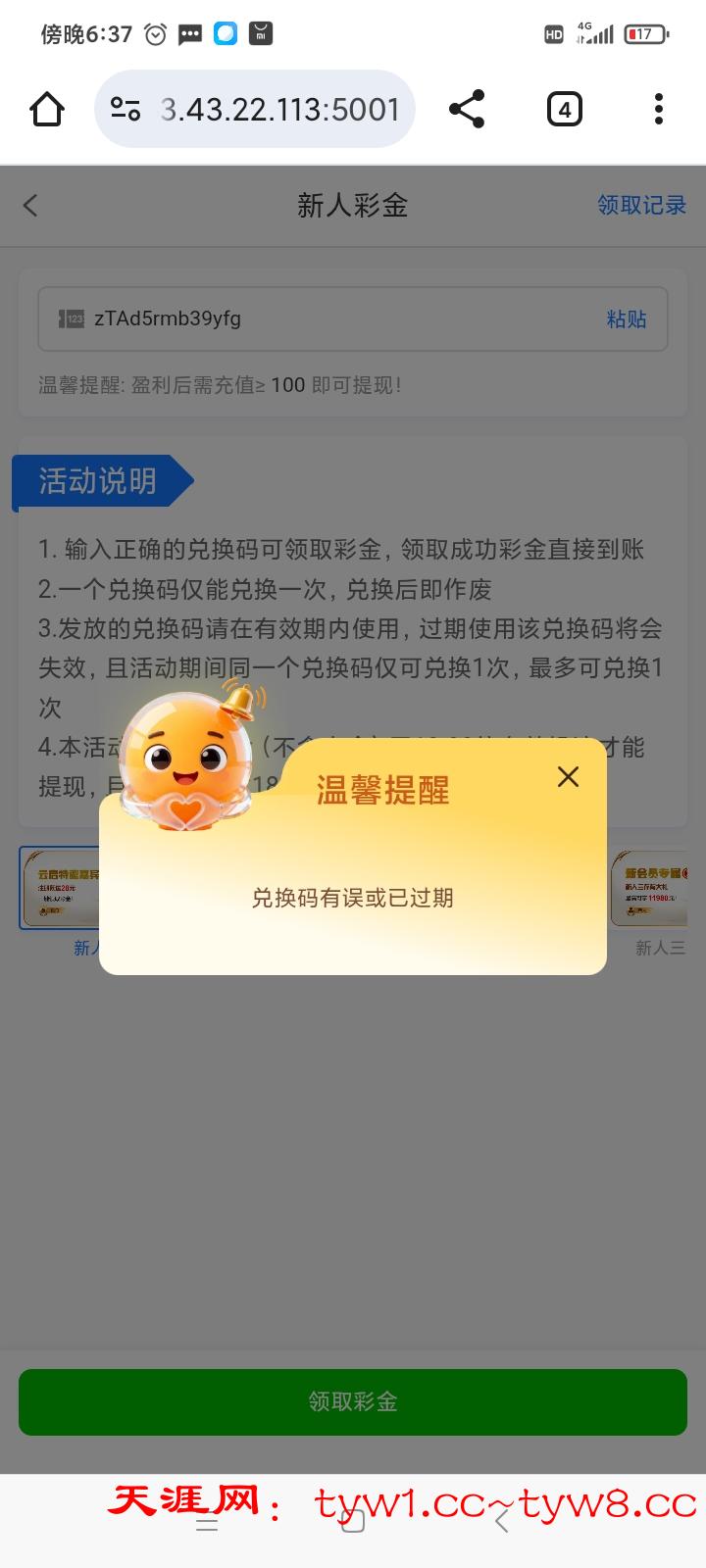 兑换码过期或者错误,