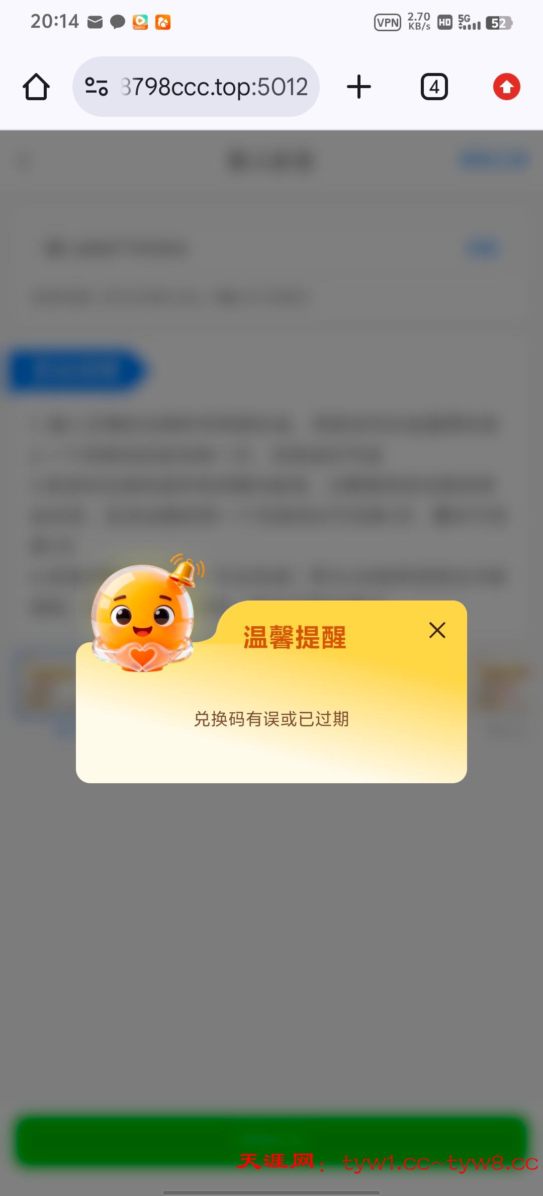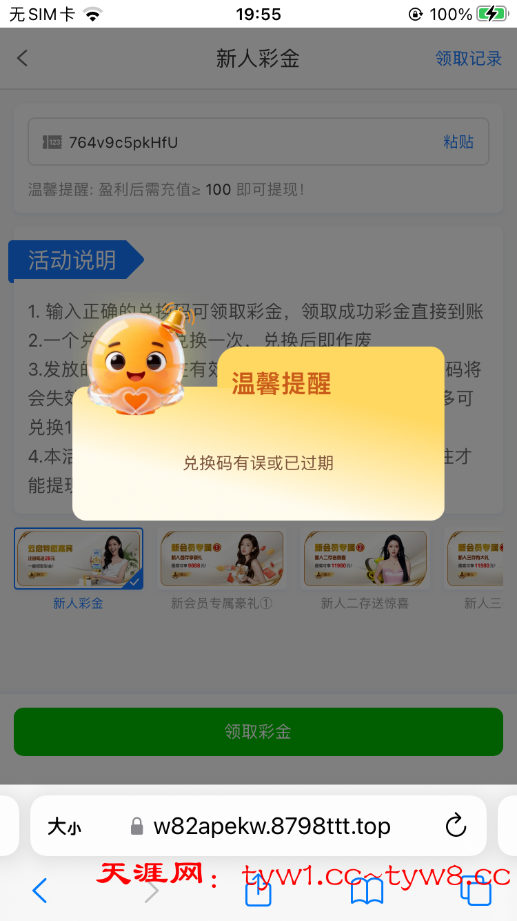 兑换码错误