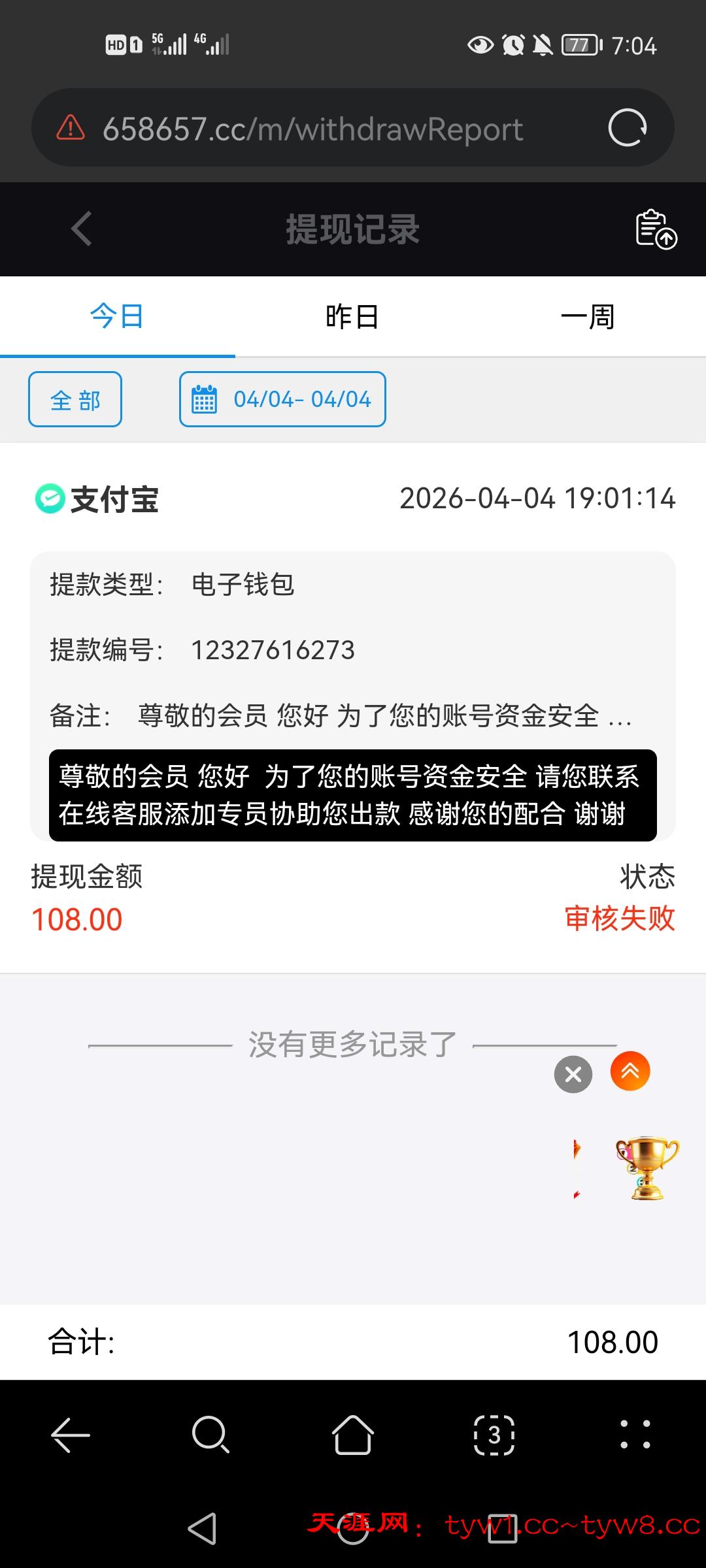 提了108不知道到不到帐
