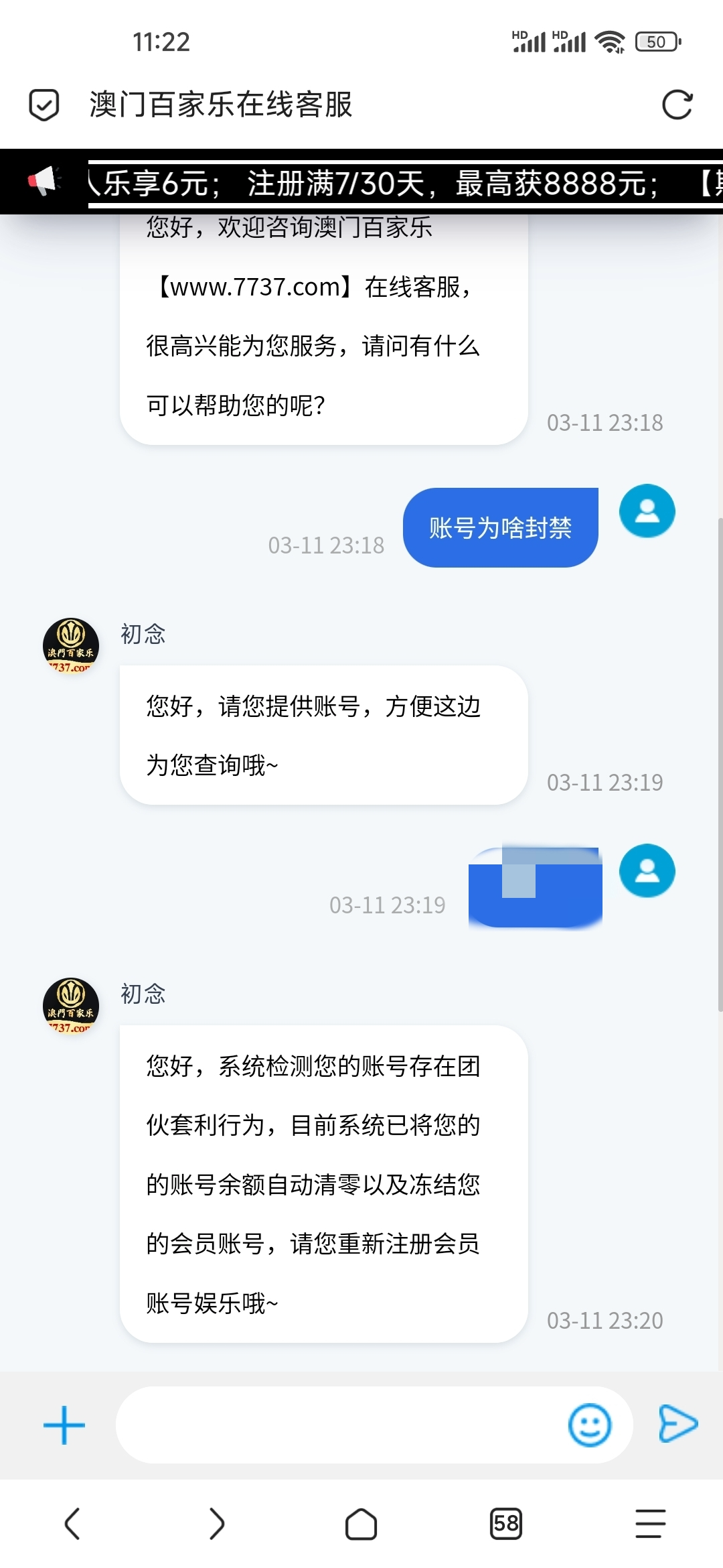 kfcv50 别去了,我也是接的电话,让领取37,打到384,提370,立马封禁账号