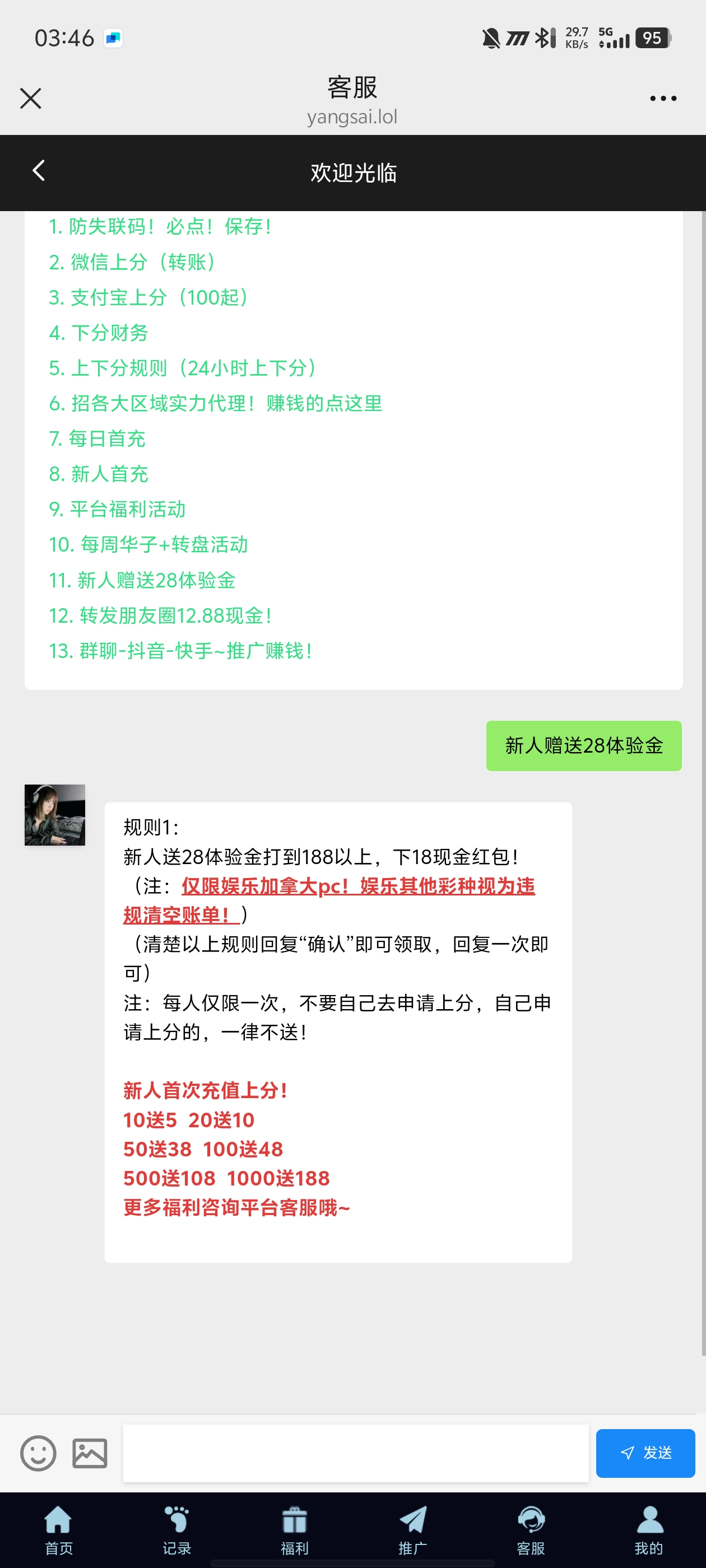 扫码注册,联系客服发送确认送28,188下18