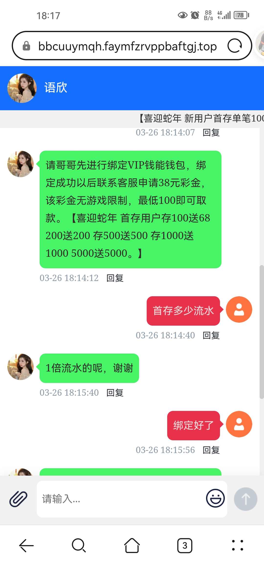 告客服电话特邀,会让你绑钱能地址(vip钱包就是钱能),绑完账号跟他说一下就送,100提