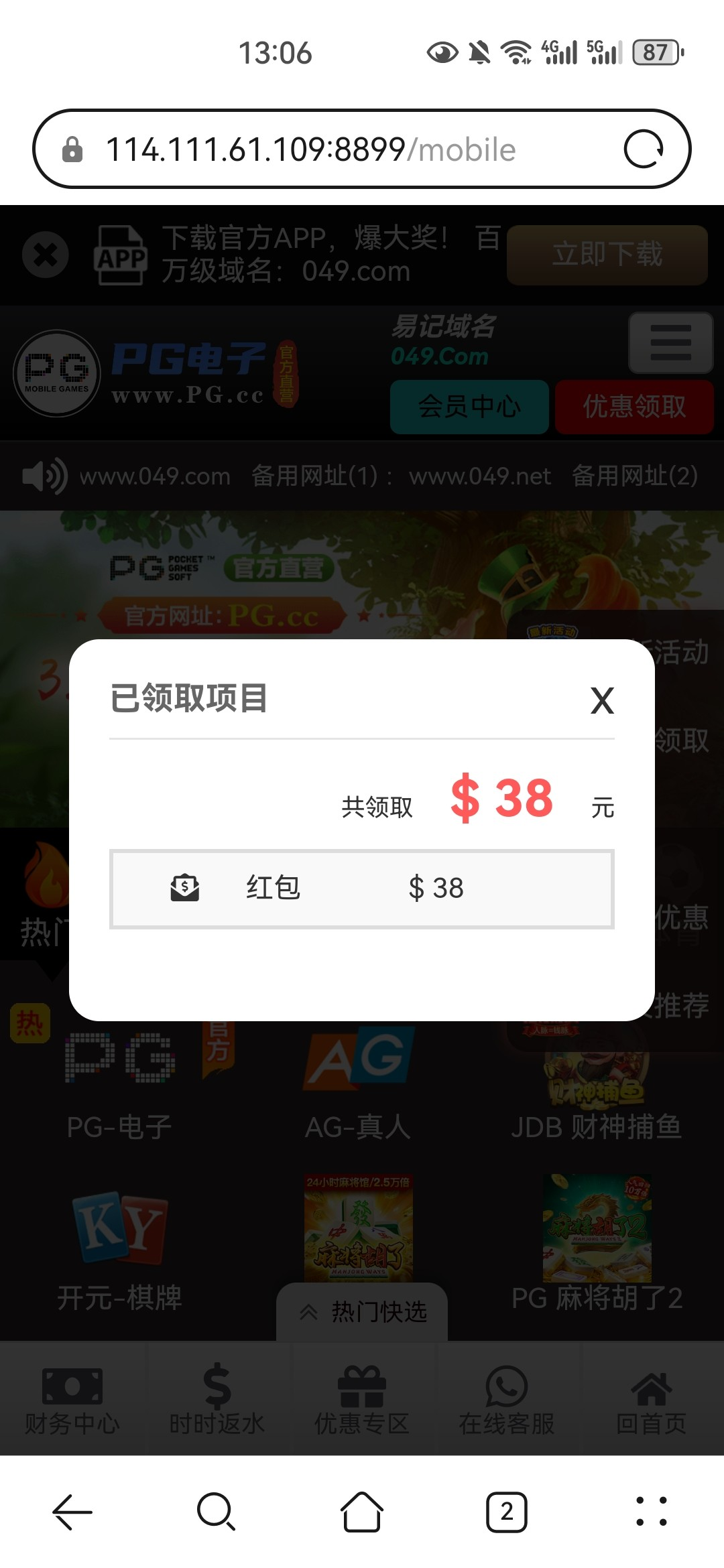 PG电子/回馈彩金38