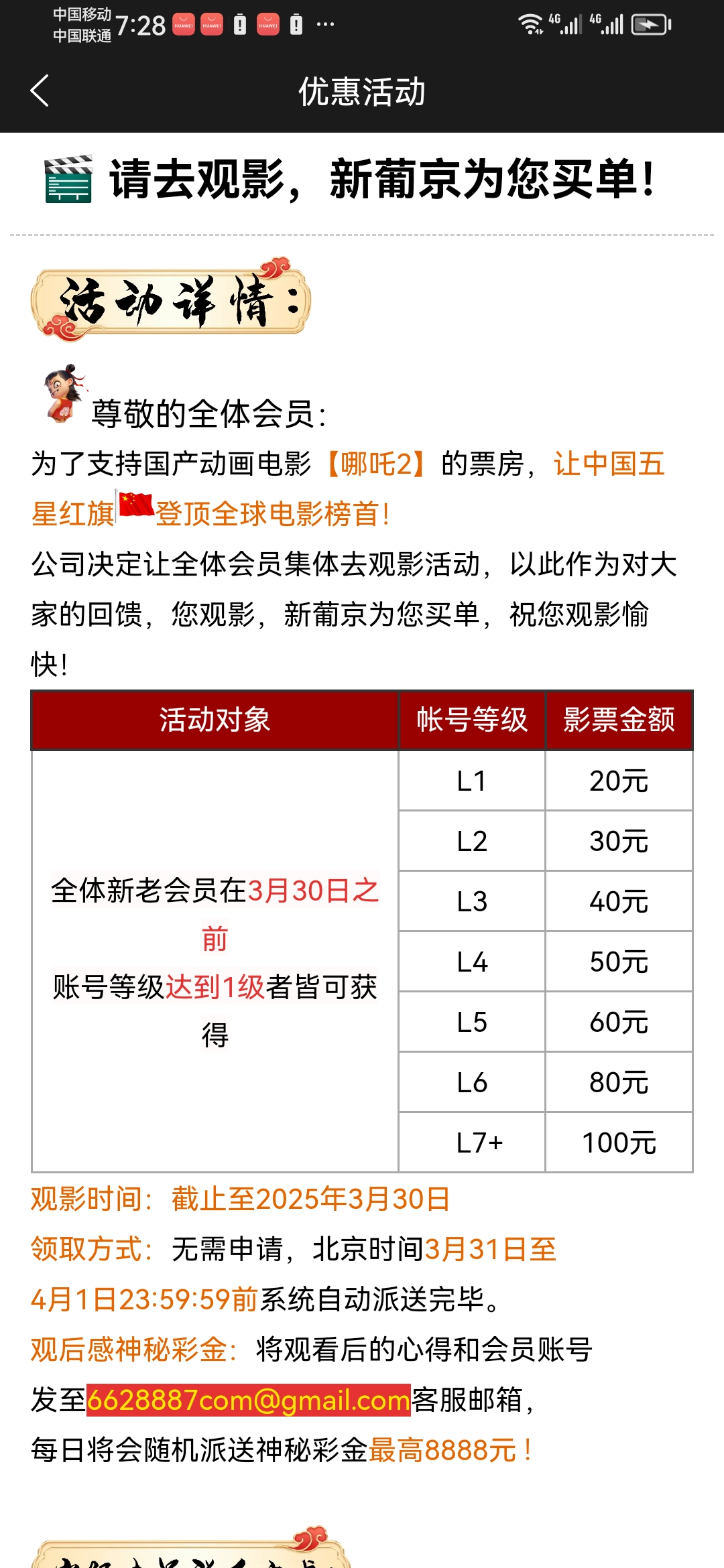 【662叻咤电影票补贴】