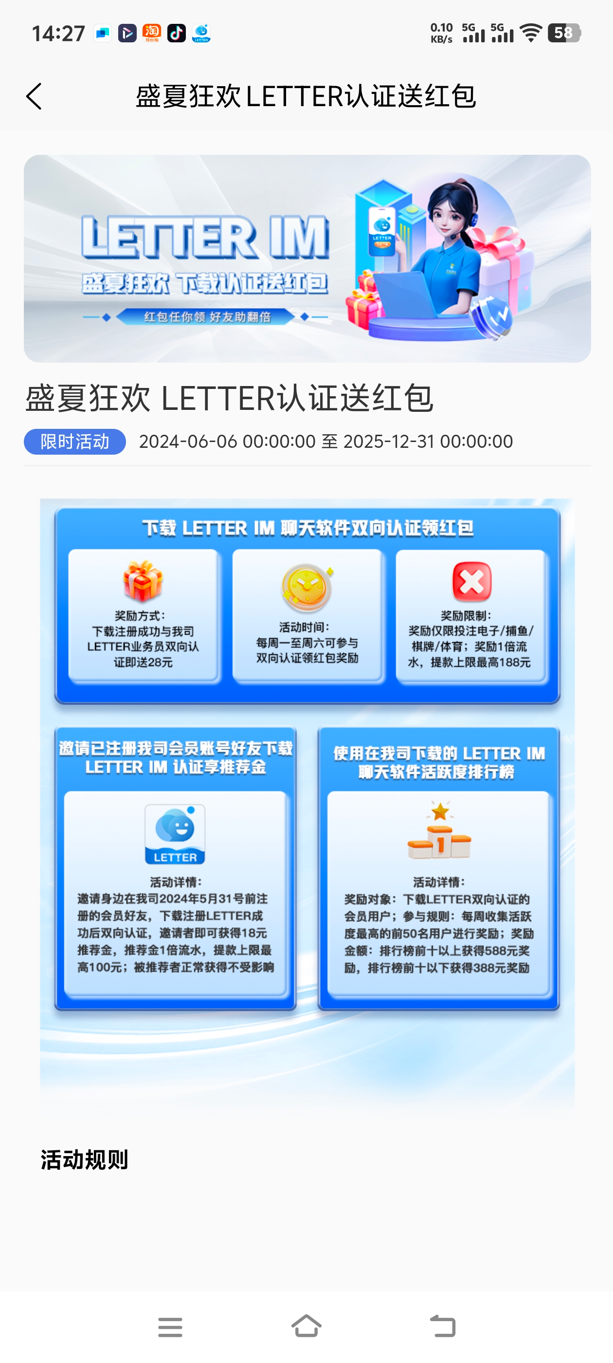 历史充值100+老用户下载letter软件找专员申请双向认证彩金28