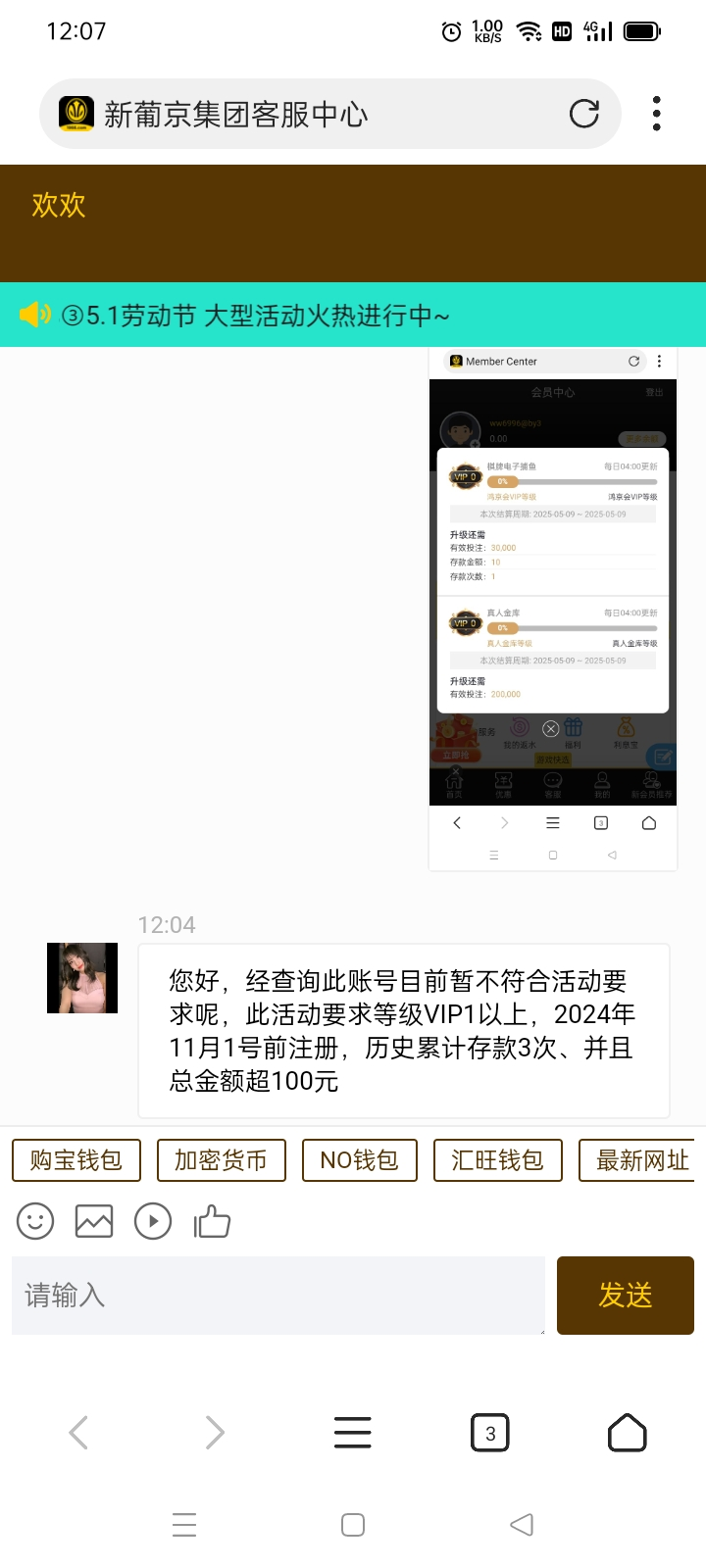 您好,经查询此账号目前暂不符合活动要求呢,此活动要求等级VIP1以上,2024年11月1号前注册,历史累计存款3次、并且总金额超100元