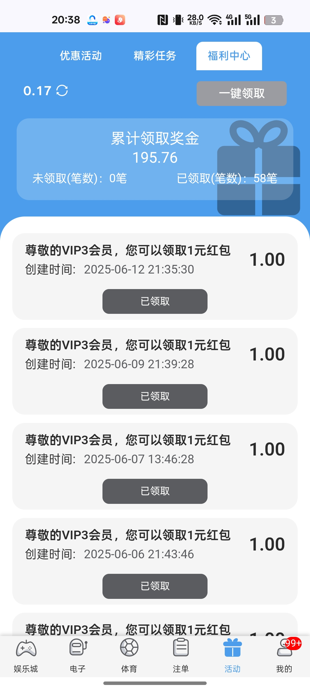 有vip等级的每天可以去签到,新人还可以去碰瓷电话彩金